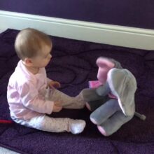 I found this elephant on lightening deal and it had great reviews. I decided to get it for my newborn and she loves it. I use it for when I change her diaper. it sings a song and also plays hide and seek. It’s ears come down over its eyes and then back to normal. It is very cute and babies love it! It is a decent size as well.