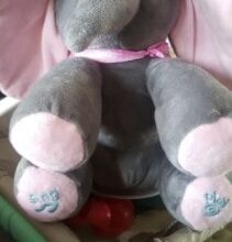 My daughter received this as a gift, and it is so cute, plush, and soft. I had already purchased the book “If Animals Kissed Goodnight” separately, so now she has the set. I will definitely consider purchasing one of these as a gift in the future! As a side note, the gift fits perfectly with the elephant theme of the shower invitations, favors, and decorations.