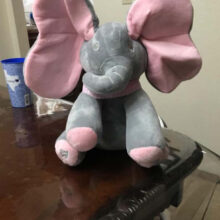 My daughter received this as a gift and let me tell you, it is THE cutest singing stuffed animal i have ever seen! It’s such great quality, so so soft and well made and the voice is super cute. (Not creepy like some!!) The elephant’s ears move to the music and play peek-a-boo with baby. It’s held up great so far even with my 1.5-year-old pulling on the ears and pushing the buttons a hundred times a day! We show this off to everyone! I think it will become my go-to baby gift for friends now, and would definitely purchase another one if anything were to happen to ours. I am shocked at the price, something this great of quality and cuteness would generally be upwards of $45-50, so at this price is the perfect buy!!