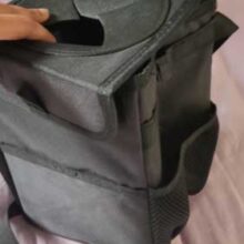 This trashcan works well in our SUV. With three kids and a busy schedule we often eat snacks or food in the car. This is the third trashcan I’ve now bought for a vehicle, and this one they got it right. The size is good and holds quite a bit. The thing I like the most is the top you don’t actually have to undo it or do anything to access the trash can you just push it in the top. My kids broke the last one by stepping on it too many times, and this one actually is elevated off the ground which makes less of a tripping hazard. You can also put a trash liner it so you can just take out the whole bag of trash out quickly and easily. It also had like a bungee cord on it if you didn’t want to use the strap if you wanted to utilize it somewhere else. I put it around my center console so it could be utilized in the backseat.